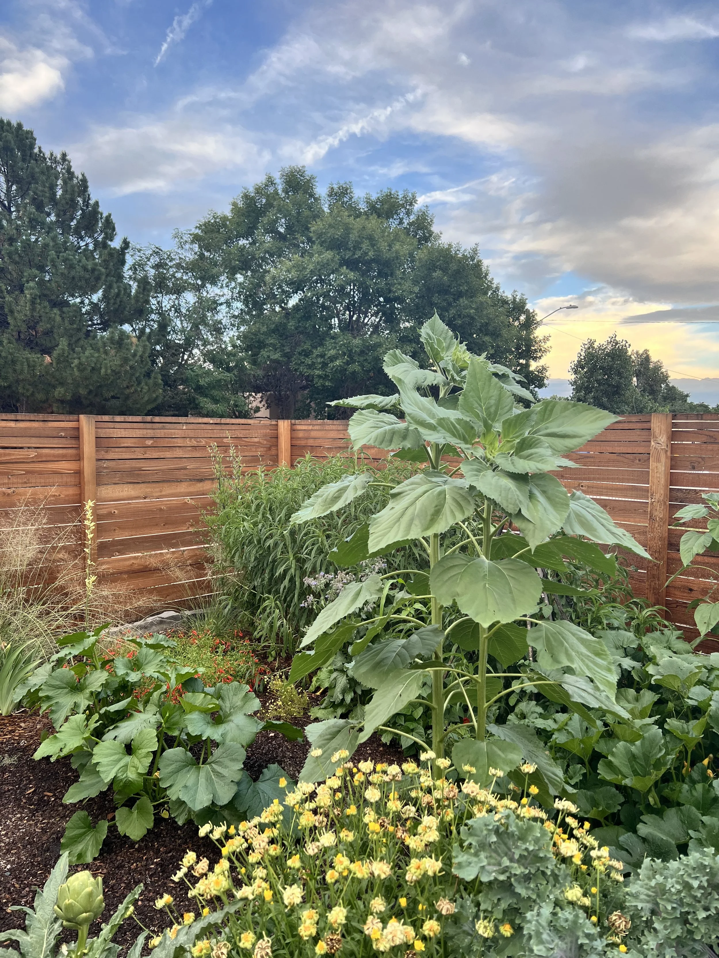 Struggling with an early draft of the book manuscript one morning, I took a page from Mr. Wright and Ms. O’Keeffe and busted out the electric rototiller to break up a recalcitrant patch of rocky clay in my front yard. After I finished amending the soil, I loaded my Subaru up with gallon and five-gallon starts from Plants of the Southwest and turned that corner into a little oasis of native flowers and trees. There may be more cost-effective ways to counter writer’s block, but my afternoon of fevered planting in 2023 paid off. That original eclectic selection of seedlings has grown into a robust grove — the backdrop for this year’s wild tangle of beans, sunflowers, and pumpkins. Whatever snarl of ideas in which I’d ensnared myself dissolved amidst the sweat and the soil and the afternoon sun.