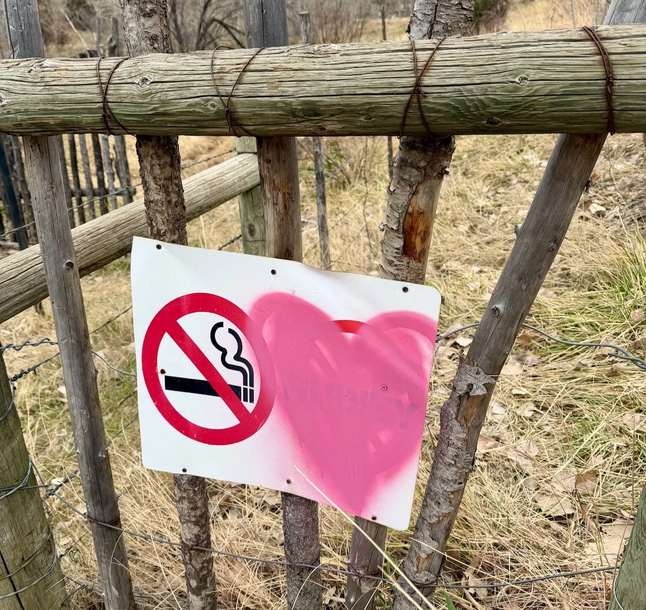 We’re okay with “no smoking” apparently, but the “no nudity” signs have been all artfully decorated in protest.