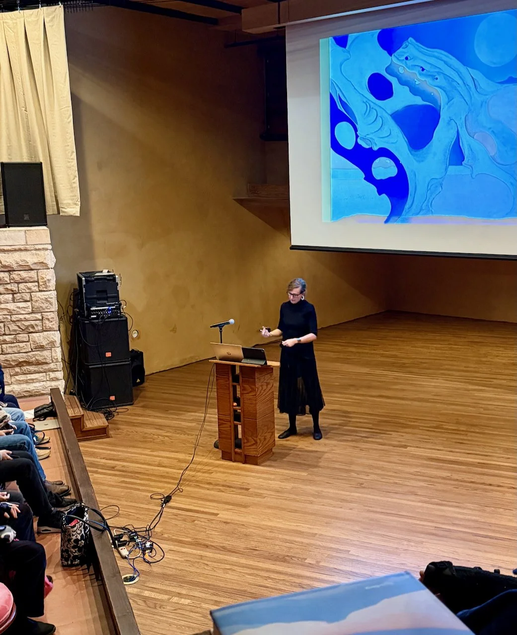 This year, autumn has come late and the trees are still mostly green, punctuated by the occasional glint of gold or crimson. The tour season is wrapping up but visitors still file through the house, gasping at the murders (maybe read the Wikipedia page first?) and knocking their brows on the low thresholds. I’m here to give a talk, “Frank Lloyd Wright and Georgia O’Keeffe: Imagining Midwestern Landscapes,” at Hillside Theater. The audience laughs in the right places; I’ve dredged up some of my excised material on barns for the occasion. There’s a signing afterwards and I’ve gotten down my standard inscription (“My best wishes for your own trip through the long desert, wherever your journey takes you”) though a few patrons invariably ask for something a little different. This time someone requests a string of the first words that spring to my head in rapid succession, which include “cloud,” “sensate,” and “diligent.” Freudians and Jungians, I welcome your interpretations.